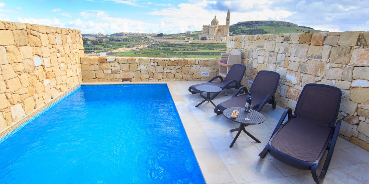 Unwind and recharge with breathtaking views over the green valley of the renowned Ta’ Pinu sanctuary in Gharb, our Gozo farmhouse features 3 Bedrooms, 2 Living Areas, open Kitchen and Dining plan, private Pool & Lounge Deck, 2 BBQ Areas and any modern living comforts you may dream of. Click the read more button below to see offers and make a booking in our large traditional Gozo Farmhouses